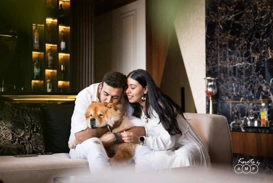 If you have a pet, let them be a part of your story. Playing with your dog or cat brings out natural smiles and real love. This pre wedding shoot idea feels warm and full of personality.