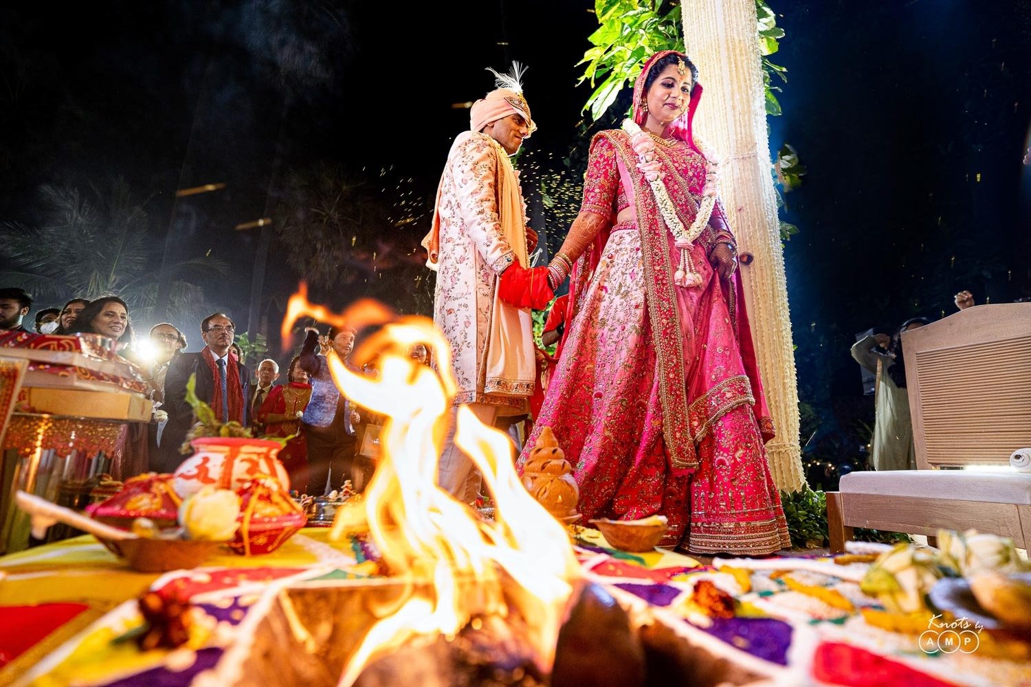 Mugdhaa and Devam were destined to meet. They were working in the same company, but never came across each other. It was in the lockdown last year, they met through an arranged marriage match, set up by their parents. From the start itself, they had an instant connection. And therefore, it didn’t even take time, they got married in three months, from the time they started talking. And the energy and the happiness they bring out as a couple together, is totally infectious. You will get to see in the pictures! This was a beautiful Marwari Wedding at Taj Lands End, Mumbai.